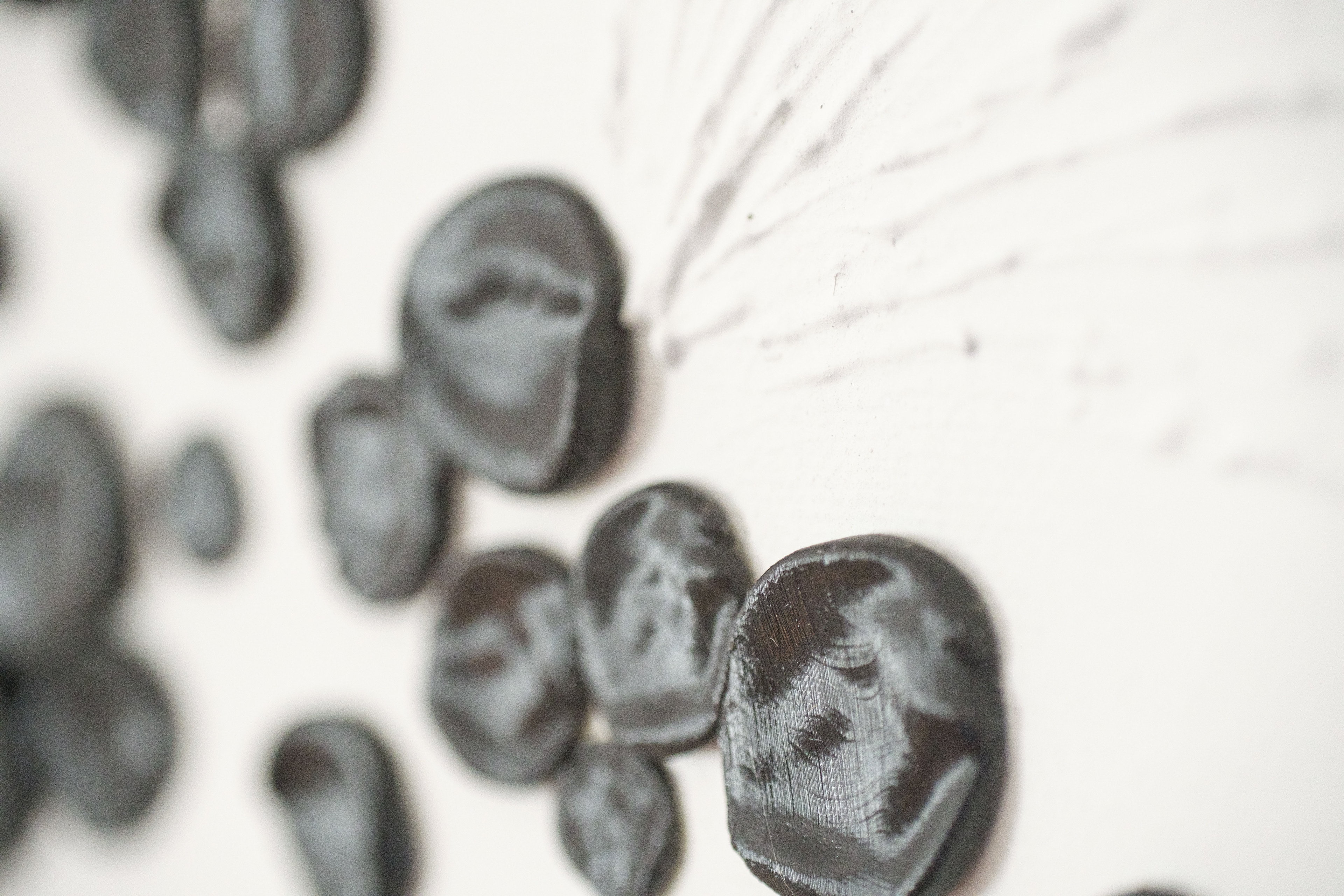 técnica mista, gesso, argila, tinta acrílica, papel de seda e PLA sobre tela